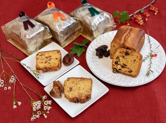 ハッピーラミーでは、アイリッシュウイスキーに漬け込んだ「イチジク」、ダークラムに漬け込んだ「レーズン」、スパイスドラムに漬け込んだ「アプリコット」の3種類のケーキを作っている。