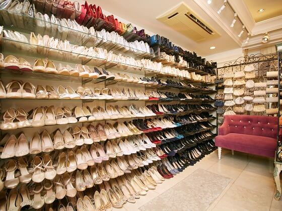 天井に届きそうな量の靴やバッグ!