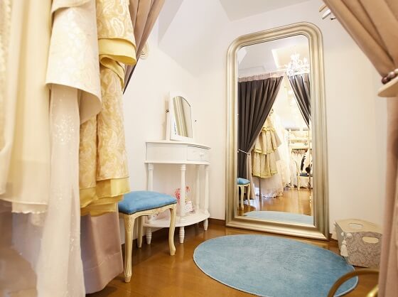 「オリジナルのドレスや小物など、アイテム数はそれぞれ200点ずつくらい増えましたね。スペースを見直したいなと思い、試着室を1室増やしてヘアメイク専用ルームも作ったんです」