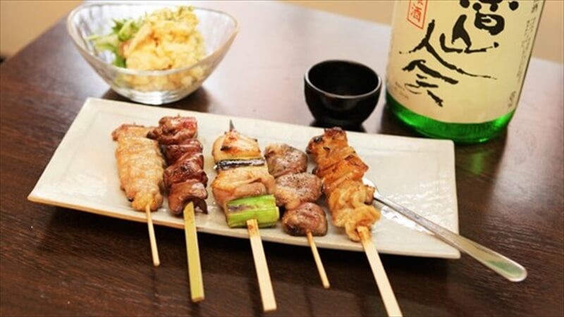 もも、ねぎま、砂肝、皮、つくねの5本。炭火で焼くこだわりの焼き鳥は「専門店にも負けてない」とお客さんからも好評だという。シンプルな味付けで、鶏肉のおいしさを噛みしめると、ちょっと一杯飲みたくなる。