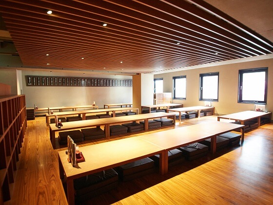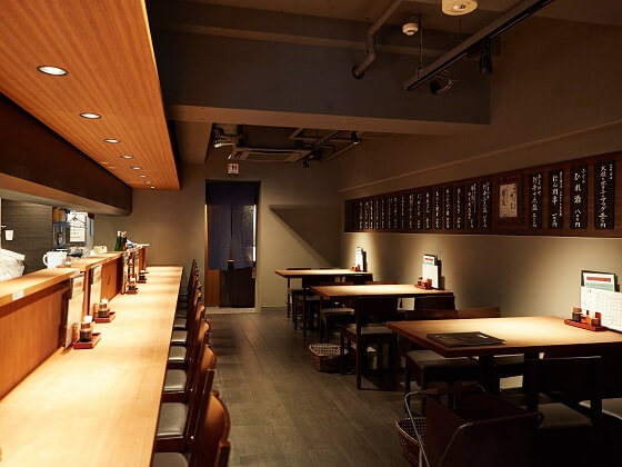 フロアには、テーブル席がゆとりを持って配置されている。しっとりとした和の雰囲気が漂い、ゆっくり過ごせそうな落ち着いた雰囲気だ。