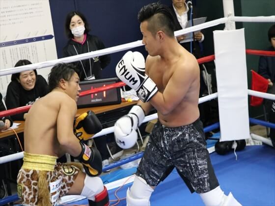 河原さん自らがK1選手と対戦。まさに身体を張っている!