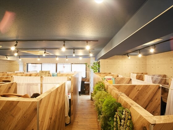 入ると各デスクが仕切りで区切られている。