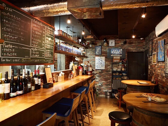 テーブルやカウンターの佇まいにレンガ風の壁。醸し出す雰囲気がもう、イタリアの街角にある店のようだ。