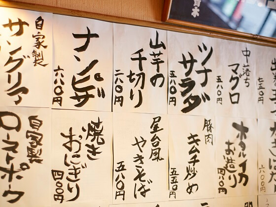 二人によるとお店の自慢はなんといっても料理! 板前出身の料理人だった父から受け継いだノウハウを元に、天王町店で料理を試作。評判がよいものを横浜東口店でも提供するようにしている。現在は150種類以上のメニューがあるとのことだ。