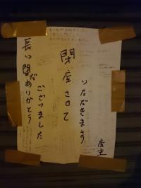 http://hamarepo.com/story.php?story_id=882過去に「歩道上のお店」としてキニナルで紹介されていた「たかさご亭」ですが、閉店していました。原因はなんなのか気になります。また、閉店の告知が凄いこと(寄せ書き)になっています。レポートお願いします。