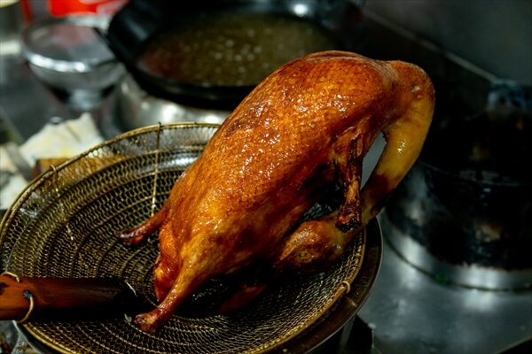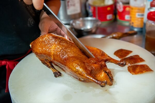 お店の中に一歩足を踏み入れると、ちょうど北京ダックの調理をしているところだった。