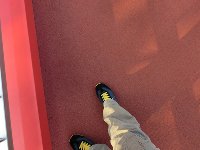 でもゴムチップウレタンだと足裏にしっかりグリップする。確かに格段に歩きやすい、昇りやすい。