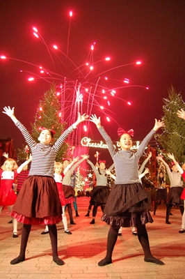 続いて、山手のダンスチーム「天然ダンス工房」によるパフォーマンスと花火に合わせて、イルミネーションに灯りが灯った。