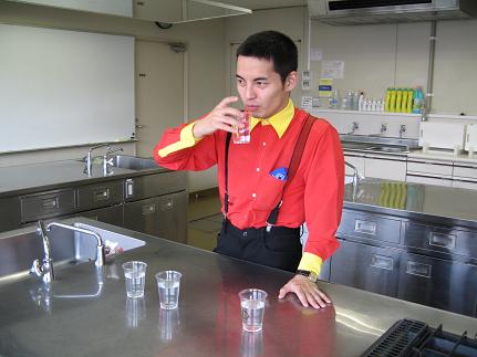 お笑い芸人とは思えない真剣な表情で、水を吟味している。