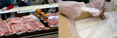 そして食材は、まぐろ(メバチまぐろ)82kg、酢飯が230kg。巻き海苔は記録と同じ550メートルと少し。