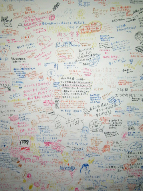 閉鎖時に訪れたファンによる寄せ書き