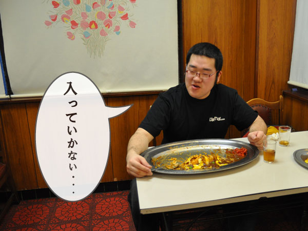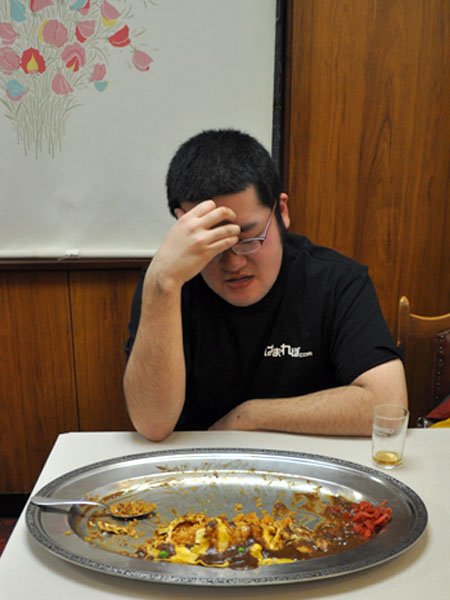 またもや完食できず、頭を抱えるデカ盛りくん。
