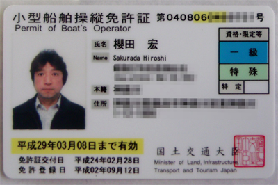 櫻田さんの船舶免許証を見せてもらった