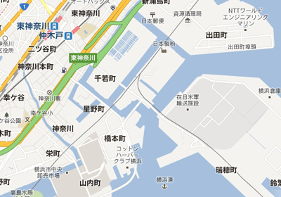 googleマップより。確かに東神奈川は海に近い