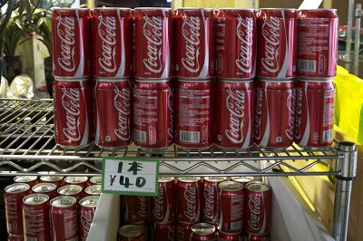 どれも新品でキレイ。これらが100円なんて信じがたい。奥に進むと、投稿にあった通り1缶40円のコカ・コーラも!また付近には1リットル30円など、ビックリな値札が付いた飲料水のペットボトルがずらり。