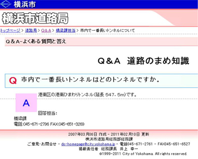 同課は、「はまれぽ」が何度もお世話になっている、横浜市の橋博士こと、松本さんの在籍する部署。しかし、トンネルは博士の管轄外ということで、別の職員の方に対応頂いた。