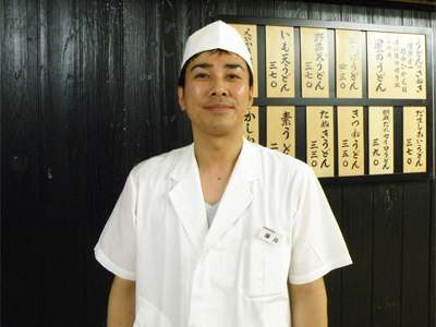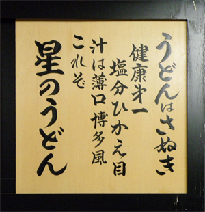 まず、「麺は讃岐、出汁は博多」の張り紙の件から確認してみたところ、正式には「うどんはさぬき、汁は薄口博多風」が正しいんだそうだ。なお、同店のコンセプトでもあるこの標語は、今でも店外の看板に明記してあり、開店当初から変更もしていないとのこと。