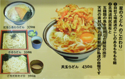 相鉄線横浜駅構内にある、うどん専門のスタンド店、「星のうどん」。薄口のダシと、コシの強い麺が特徴で、忙しい通勤時にうれしい店である。