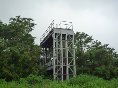 ツタが絡まる水門の相棒である、もう一方の水門も残されている。