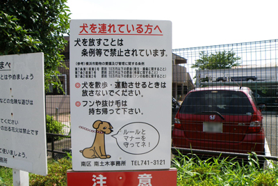ここが横浜市の土地であれば、「土地所有者」とは書かずに、「横浜市」とするはずだ。しかし念のため、市へ確認してみることに。階段を上りきったところに公園があり、南土木事務所の電話番号が書かれていたので、さっそく連絡してみた。