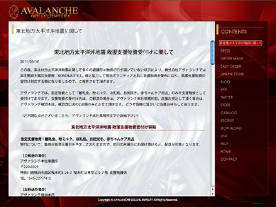 横浜に本店を置くジュエリーショップの「AVALANCHE」では、店舗への持ち込みか事務所への郵送で支援物資を受けつけているが、現地で配布する際の混乱を避けるため、粉ミルクや離乳食など、赤ちゃんケア用品のみを受けつけている。