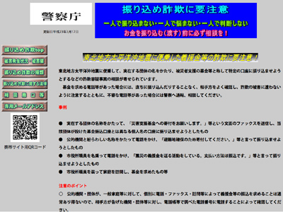警察庁ホームページでは、詐欺への注意を呼びかけている