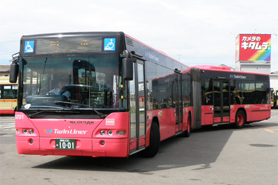 投稿にあった「ツインライナー」とは、路線バスを運行する神奈川中央交通(本社・平塚市)の一部のバス路線で使用されている、2両式の連節バスのこと。