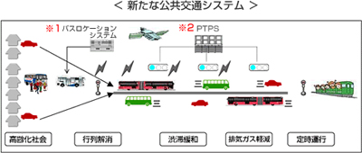 同委員会で検討されたのは、大量輸送が可能な新型車両の投入と、バスの現在位置がリアルタイムで把握できる「バスロケーションシステム」、公共車両を優先して信号をコントロールするシステム「PTPS(Public Transportation Priority Systems)」などの導入だった。
