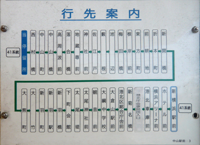 バス停「高周波前」が停車する市営バス41系統は1953(昭和28)年8月1日に開設。「中山駅」から「新横浜駅」まで運行している。