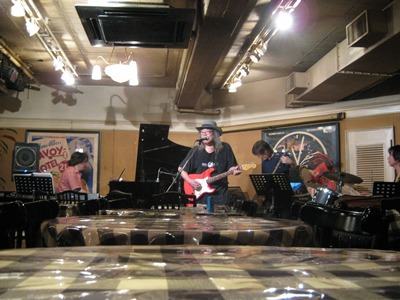 約束の時間にbarbarbarへ到着すると、ライブ前のリハーサルのセッティング中であった。