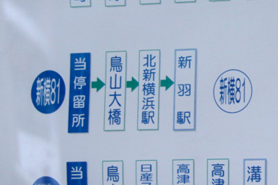 投稿にあったバスは東急バスが運行する「新横81系統」と呼ばれるもので、新横浜駅から北新横浜駅を経由し新羽駅までを繋ぐルート。