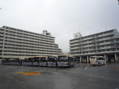 グリーンライン川和町駅から参加者を乗せたバスは、普段は通らない道を約1時間半走って市営バス保土ヶ谷営業所へ。