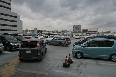 横浜ジャックモールの特徴は、みなとみらいには珍しい屋上駐車場の存在。そこで、屋上に上がってみると、WEST棟もEAST棟も車でいっぱい。大きな袋を抱えて帰る人も多いが、これからお店を見て回ろうという人も次々入ってくる。