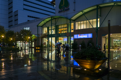 横浜ジャックモールの最終日は、台風が接近している中、たくさんの人が名残を惜しみにきていたが、暴風雨となった閉館の瞬間はとても静かだった。