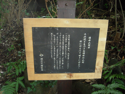 たて看板があり、「戸塚十勝」を残した幕末の歌人、内田永保が詠んだ歌が紹介されている。この案内によると戸塚公園周辺は、1800年代から清水が絶えず流れていることがわかる。