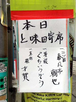 白楽の居酒屋さんが行っている「と味田寄席」ですが手書きの看板だけなので中の様子が気になります。ぜひレポートをお願いします。(ゆきむらさんのキニナル)