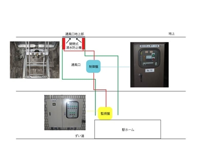 浸水防止機が稼働し通気口が塞がれた状態(横浜市交通局提供)