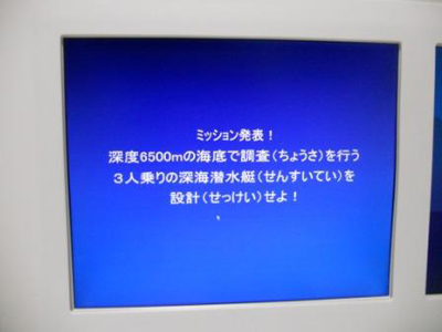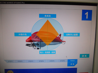 まずは設計体験へ。子どもが数人自由な雰囲気で楽しんでいる脇で、筆者は潜水艇の設計に挑戦だ。右の設計画面を見ながら、左の画面を操作するので忙しかった!