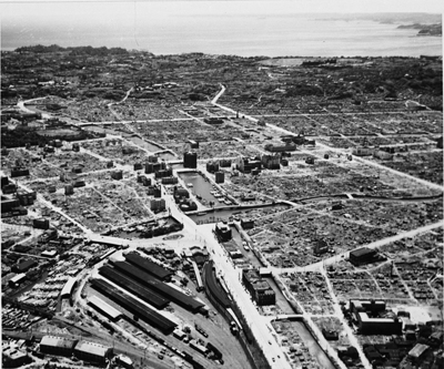 上が横浜大空襲直後の写真で下が「復興五年を顧みる」発行当時の写真(横浜市史資料室より)