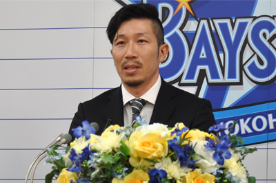 6年ぶり、35歳のベテラン選手としてベイスターズに帰ってきた多村選手は、「横浜に帰ってくることができました。ファンの方も望んでくれているようなので、元気な姿を見せて優勝争いできるように頑張っていきたい」とあいさつ。