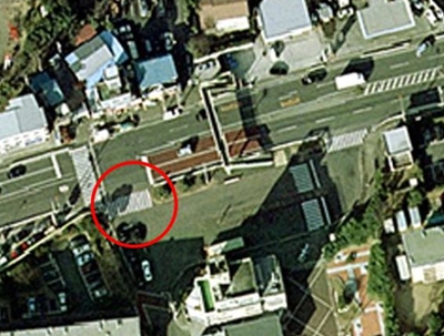 赤い○で囲った部分が、問題の横断歩道 (Google Mapより)