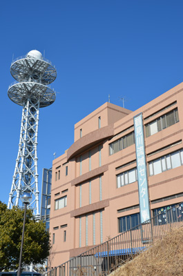 大きなレーダーが目を引く鶴見川流域センター