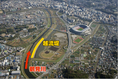 問題の鶴見川があるのは、新横浜公園を抜けたその向こうだ。