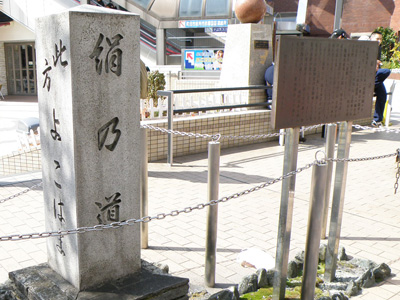 八王子-横浜間の中継点、町田駅前にも「絹の道」の碑が建っている