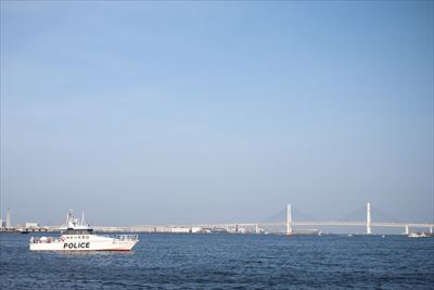 横浜港の入口を横浜ベイブリッジが結ぶ