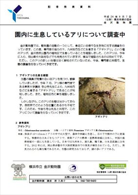 発見されたアギトアリは調査中。直接人に危害を加える可能性は低く、横浜周辺で身近にみられるアリの種類はおよそ50種、珍しいものも含めると100種ほど