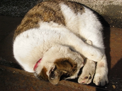 寺院付近にいる飼い猫