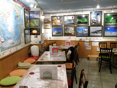 店内は、5卓約20人が利用できるほどの広さで、南極の様子や動物などのさまざまな写真が目に飛び込んでくる。「昭和基地、到着」といった感じが楽しい。