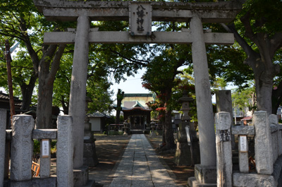 根岸駅から向かうと、掘割川(ほりわりがわ)を渡る直前にある八幡神社だ。